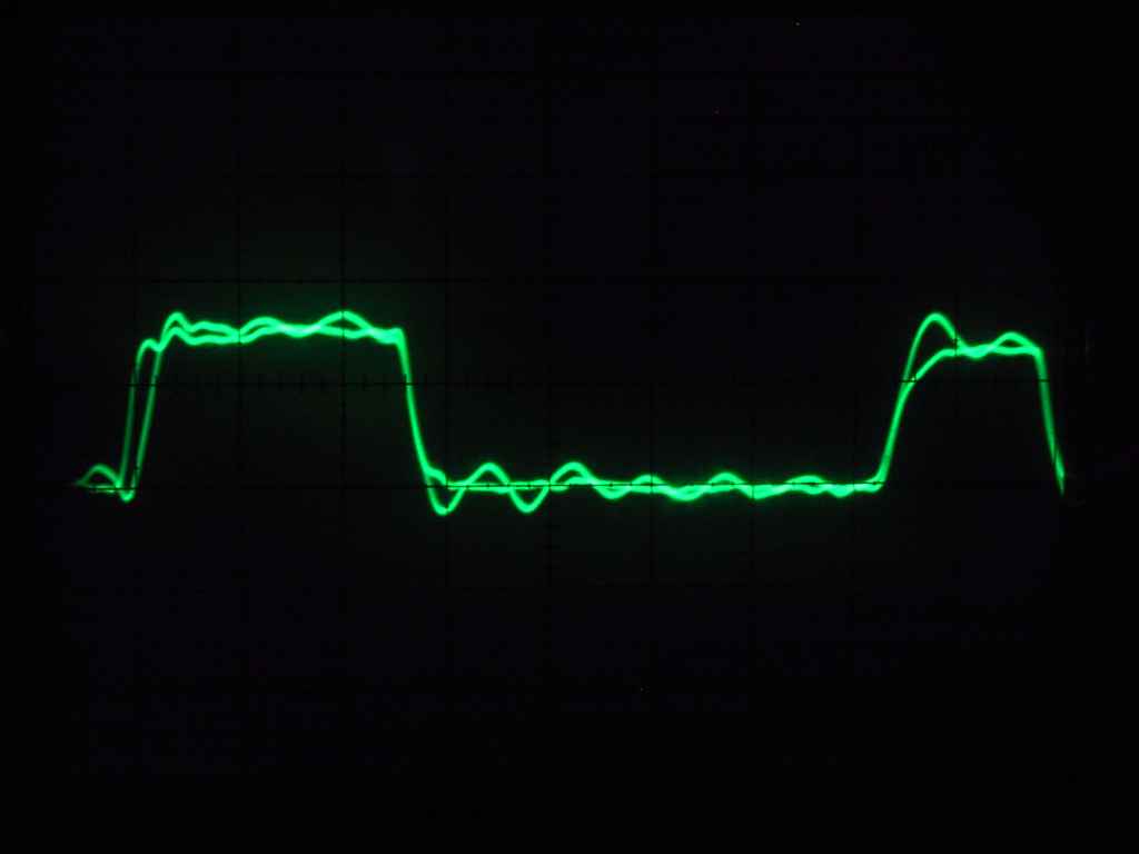 Bild IMG_3991_k.jpg = IMG_3988_k.jpg, diesmal mit 100 Ohm SMD Widerstand, ebenfalls ca. 10 ns Laufzeitunterschied über R8.