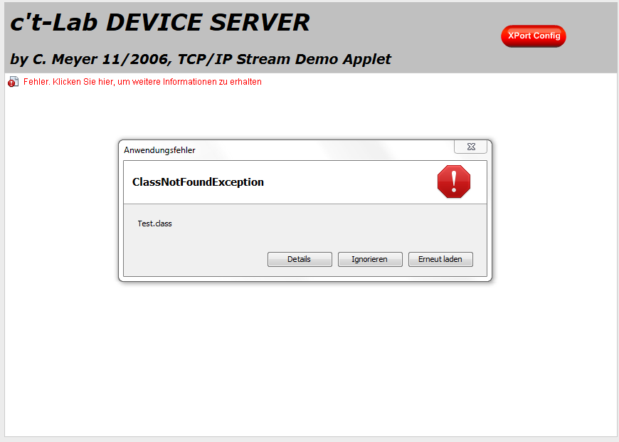 ich habe heute Versucht meinen XPort mit dem Test Programm zubestücken.