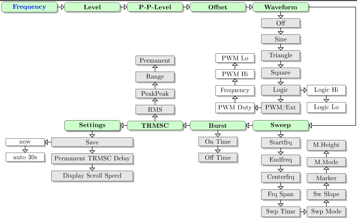 Da ich mit der Menüsteuerung schlecht zurechtkomme habe ich mir die Menüstruktur aus der Anleitung dds-german.pdf