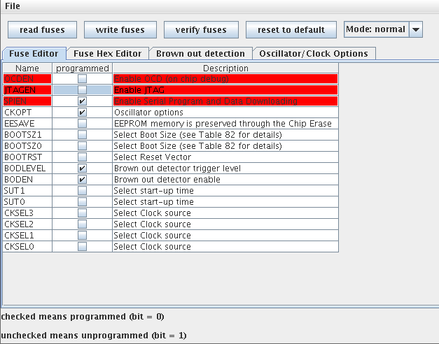 FUSES Einstellungen des Atmegas32 auf der DDS Platine